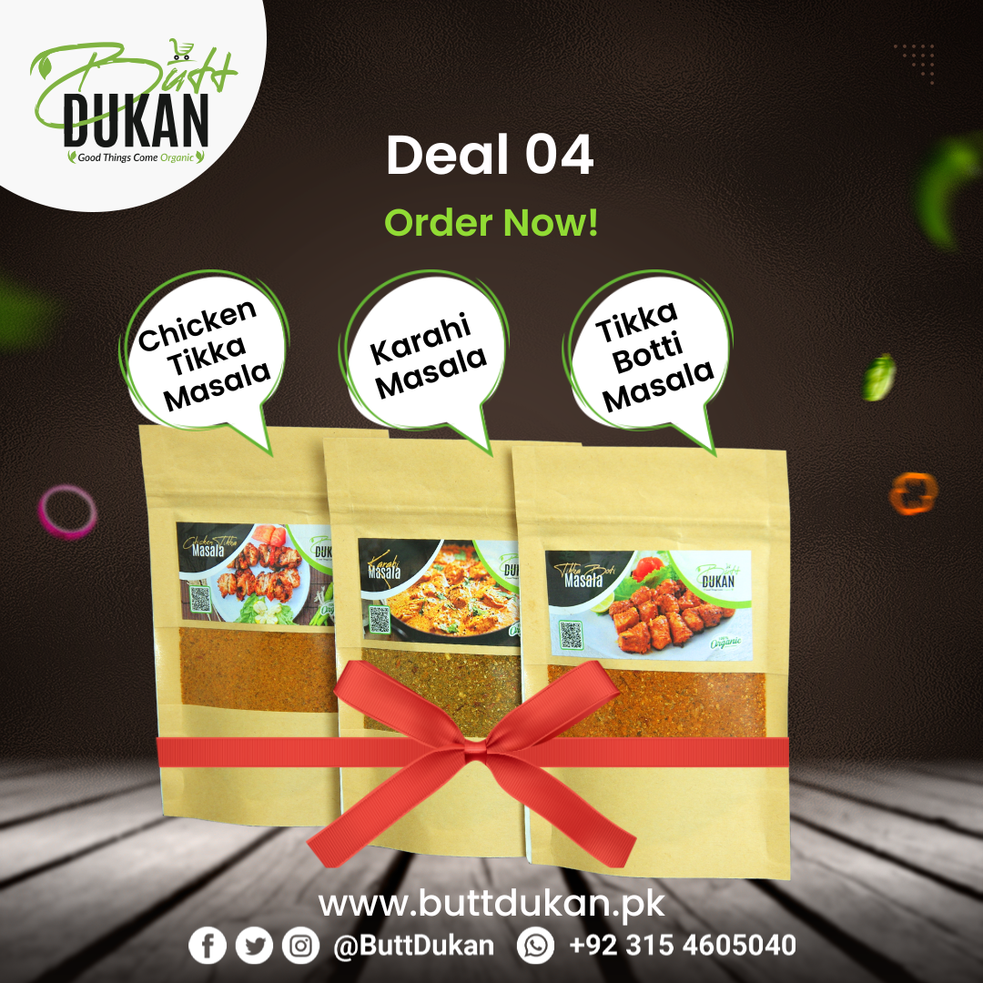 Butt Dukan Masala Deal 4 has Chicken Tikka, Karahi, and Tikka Botti Masalas collection, and...
