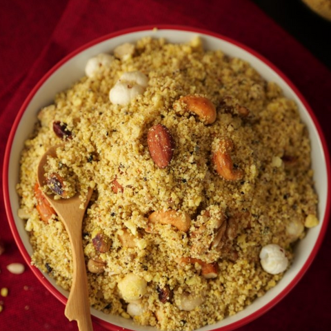 Butt Dukan's Moong Dal Panjiri is a nutritious and comforting traditional Pakistan snack or dessert, often prepared during winter and for special occasions. Made primarily from roasted moong dal (split yellow lentils), wheat flour, ghee (clarified butter), sugar, and a mixture of dry fruits and spices, this wholesome dish treats taste buds and offers numerous health benefits. It's especially popular in Pakistan and is often given to nursing mothers due to its high nutritional value and warming properties.